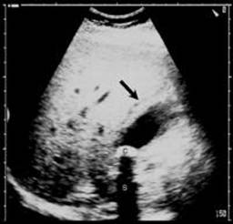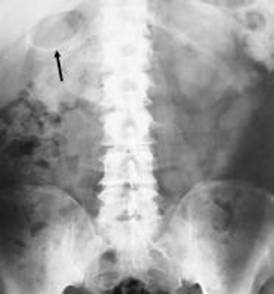 Possibile visualizzazione di un calcolo in sede colecistica (perché ciò avvenga il calcolo deve essere radiopaco e ciò avviene in circa il 15-20% dei pazienti)