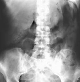 Fig 2 radiogramma diretto dell'addome. Numerose formazioni all'ipocondrio di destra