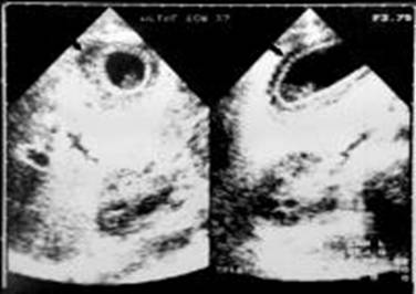 Fig 3 Esame ultrasonografico dell'addome . slaminamento della parete colecistica