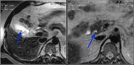 Nelle seguenze T2 pesate è possibile invece vedere presenza di calcoli, liquido pericolecistico e ascessi intramurali. 11 , 12