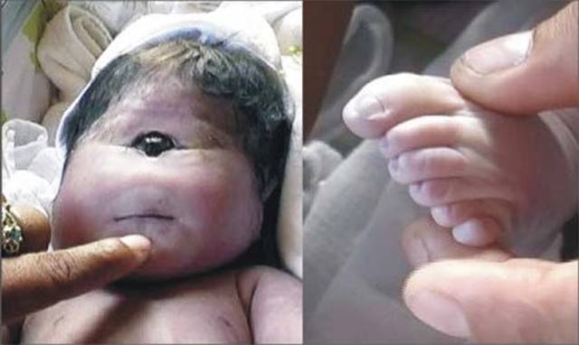 Poi c è una grave forma che deriva da malformazioni della regione prosencefalica, il paziente non ha naso, non ha la porzione palatale (ed è quindi incompatibile con la vita) a causa della mancata chiusura del rotolo anteriore, quindi non c è la migrazione di cellule e a volte addirittura abbiamo la fusione delle due cavità orbitali (ciclopia).