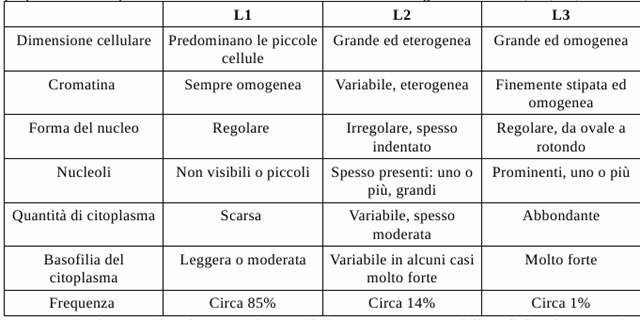 Figura : Classificazione FAB della leucemia linfoblastica acuta.
