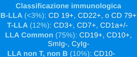 cellula da cui hanno origine: linfoide nell'85% delle leucemie in età pediatrica e mieloide;