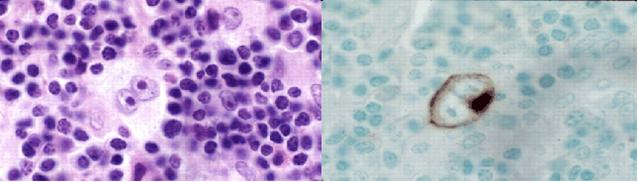 nucleoli che reagiscono intensamente per le colorazioni per l'RNA ed i nuclei