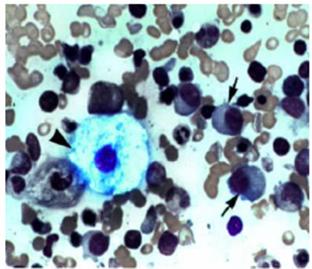 Nell'immagine è presente la cellula di Gaucher con i vacuoli che contengono materiale di accumulo.. Il tipo 1 è più frequente, questi pazienti non presentano ritardo mentale e possono vivere fino ad 80 anni.