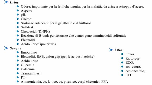 Figura : Indagini di base per la diagnosi degli errori congeniti del metabolismo.
