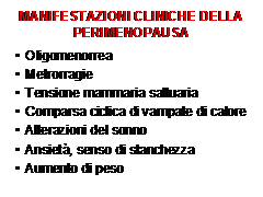 Nella perimenopausa compare la sindrome climaterica con delle manifestazioni cliniche importanti dovute all'ipoE ma anche da fattori intrinseci della donna. Per menopausa si intende ultima non solo l'ultima mestruazione ma un periodo più complesso in quanto abbiamo una cessazione della steroidogenesi ovarica con iopoE.