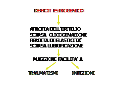 Vi sono modificazioni della sfera sessuale come << desiderio, << libido, ma alla base di ciò vi è l'atrofia, con la trasformazione di una struttura che diventa più rigida e sottile che causa dispaneuria. La portio è punteggiata di rosso, è la così detta colpite petecchiale dovuta al fatto che l'epitelio pluristratificato ( basale, parabasale, intermedio e superficiale) col passare del tempo, si assottiglia,diminuiscono e i fornici, per cui riusciamo a vedere i vasi che stanno nel derma e che appaiono come piccole punteggiature rosse, sparse, ( nb. Da non confondere con la colpite a fragola da infezione da tricomonas!).questo determina dispaneuria, per questo a lungo andare vi sono delle alterazioni della sfera sessuale,e possiamo prevenire anche problemi di coppia, dando dei lubrificanti, inoltre vi può è un maggiore traumatismo e vi può è un aumento delle infezioni con alterazione del ph vaginale, perché diminuisce il glicogeno, non vi sono lattobacilli e vi è un >> del passaggio di germi che determinano infezioni es. E.Coli, che si trova nelle vicinanze con produzione di cistiti. Il prurito vuvlvo-vaginale spesso non è correlato alle infezioni ma solo all'atrofia.
