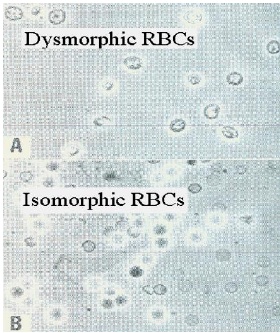 Emazie: urine non centrifugate (ottimale) per la conta e la morfologia (in corso di glomerulonefriti sono dismorfiche in quanto hanno attraversato il filtro glomerulare).