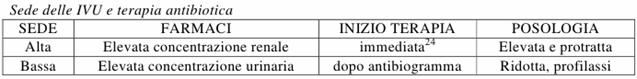 Terapia: Gli scopi della terapia sono: combattere i sintomi e prevenire il danno renale. Nei pazienti con IVU, febbre, sepsi e disidratazione e nei neonati va considerata l'ospedalizzazione con terapia antibiotica e.v. (cefalosporina + aminoglicoside) per 7-14 giorni. Dopo 2 giorni di antibioticoterapia i pazienti con IVU accertata, senza risposta clinica, vanno rivalutati. La terapia, anche quella iniziata per via parenterale, va prolungata per via orale fino al 14° giorno.La terapia o la profilassi vanno proseguite fino allo studio diagnostico per immagini.