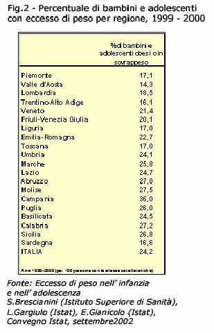 dell'obesità infantile peggiori scendendo dal nord al sud del Paese.