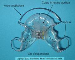 E' un apparecchio formato da un corpo in resina acrilica che trattiene nella