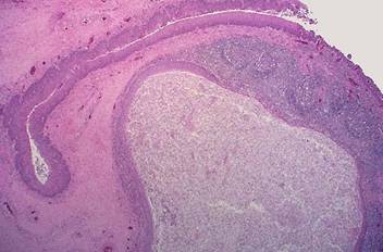Si manifesta con una tumefazione teso- elastica di -1 cm di diametro, asintomatica e priva di infiammazione periferica. All esame istologico si evidenziano cisti con cavità contenenti muco delimitate da una capsula formata da epitelio duttale.