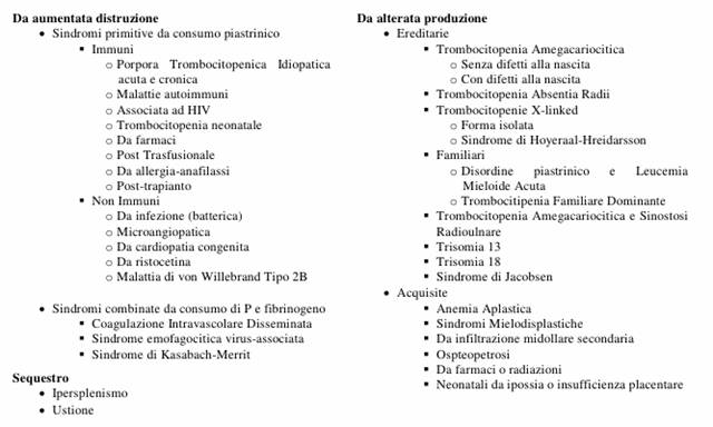 Figura : Classificazione delle piastrinopenie.