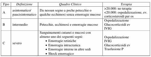 diminuzione <20.000 delle piastrine. L'algoritmo terapeutico è riassunto