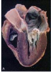 ispessimento dell'endocardio parietale del ventricolo sx o dell'atrio come conseguenza del danno dei lembi prolassati;