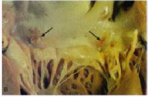 L'interessamento della valvola tricuspide coesiste nel 20-40% dei casi; possono essere colpite anche le valvole polmonare e l'aortica.