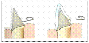 Ultimati tutti i passaggi di stratificazione, l'elemento viene asciugato leggermente e sfilato con attenzione dal modello di lavoro, quindi reggendolo sul moncone in gesso (o trattenendone la bandina o il venting ) con le pinzette si provvede a rendere più precisa la modellazione, in particolare nelle zone prossimali.