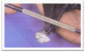 Esistono molti sistemi per la condensazione delle masse ceramiche : la più elementare e diffusa consiste nello strofinare il manico zigrinato di uno spatolino sulle pinzette che trattengono la bandina o il venting. Poiché il manico, passando sulle pinzette, produce una vibrazione, queste ultime origineranno al loro volta una vibrazione del manufatto.