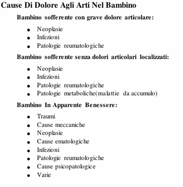 Figura : Principali cause di dolore articolare in età pediatrica.