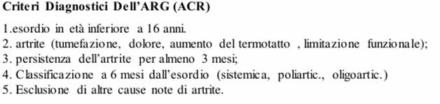 Prognosi: non c'è evoluzione verso una artrite erosiva né verso una grave compromissione funzionale.