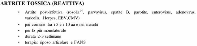 Terapia: FANS e methotrexate (mg 10-20/m2/sett. os); quest'ultimo nei casi resistenti si può usare anche forti dosi.