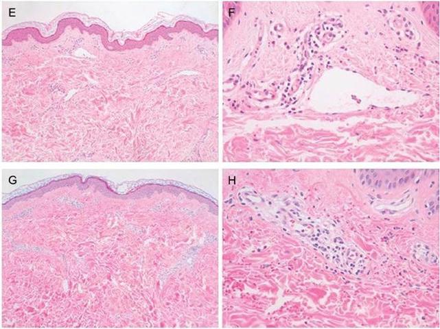 biopsia diagnostica: cambiamenti istologici che mostrano granulociti nelle pareti di arteriole o venule;