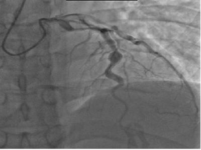 viene mostrata una coronarografia con aneurisma del ramo discendente anteriore