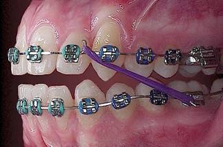 Fixed orthodontic appliances are active appliances permanently attached to the teeth by means of cement or of a luting technique called acid-etch technique. These appliances provide control over single tooth movement. They are composed of bands, brackets and arch-wire. Bands are thin metal rings usually set around the posterior teeth, leaving their occlusal surface free, and provided with attachments (brackets) constituting a slot which houses the arch-wire. The arch-wire is the active part of the appliance and is made up of a metal thread, either round or rectangular in section. Additional forcedispensers are auxiliaries, like elastics, coil springs and sometimes extraoral appliances. In front teeth, bands can be avoided and brackets are luted directly to the enamel by means of acid-etching.