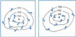 (o anticicloni) caratterizzate da pressione maggiore (A) rispetto a quelle