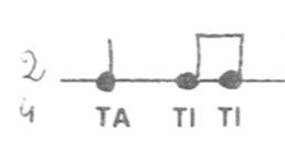 Linguaggio ritmico che sarà introdotto con l'uso di strumenti ritimici, e dove indicheremo il valore ¼ con TA, e quello 1/8 con TI, per facilitare l'inizio della lettura ritmica.