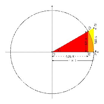 che è conseguenza del teorema di Pitagora. Infatti nel triangolo OCD nella figura in alto il coseno di x è definito come