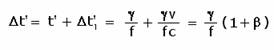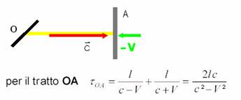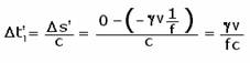 Essendo il ricevitore posto in x' = 0 , la ricezione del secondo massimo non avviene nell'istante t' = g/f ma con un ulteriore ritardo dovuto all'intervallo di tempo Dt'1 che la luce impiega per propagarsi da x' = -gv/f a x' = 0 . Tale intervallo vale: