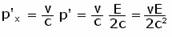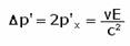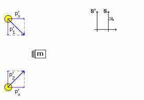 D'altra parte lo stato di moto del corpo di massa m rispetto a S' non cambia, visto che il suo stato di moto rispetto a S non cambiava. Quindi la quantità di moto del corpo è cambiata ma non la sua velocità. Di conseguenza, occorre ammettere che sia cambiata l'unica altra grandezza in giovo, cioè la sua massa. In particolare, dopo avere assorbito l'energia E, il corpo deve avere una nuova massa m' tale che