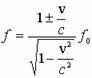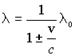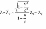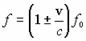 Il simbolo indica la frequenza emessa, la frequenza ricevuta, c è la velocità della luce, v è la velocità relativa tra emettitore e osservatore. Per quanto riguarda i segni, v/c è negativo se c'è allontanamento, è positivo se c'è avvicinamento.