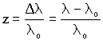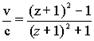 e siccome le galassie si allontanano, si suppone λ > λ0. Utilizzando la definizione di z e la formula (3), si può ricavare il rapporto v/c in funzione di z; infatti, considerando il caso in cui ci sia allontanamento, si ha: