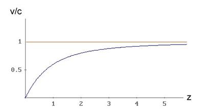 più lineare, ma si avvicina asintoticamente alla retta v=c e dunque z=2