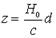 La distanza d è espressa in megaparsec (1 megaparsec = 3,26 milioni di anni luce), c vale 300.000 km/s.