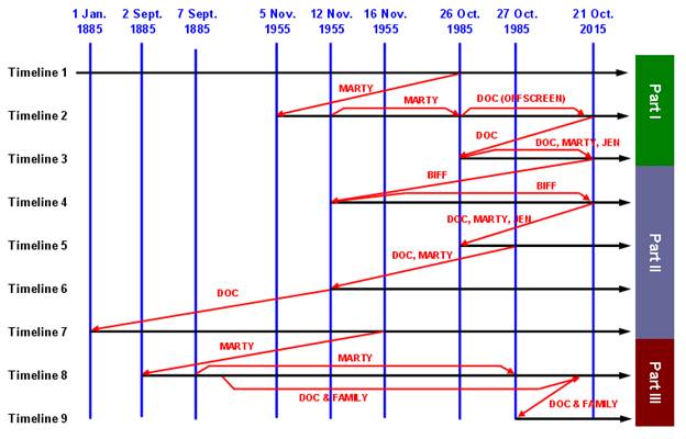 Figura 6.1 - tabella riassuntiva dei vari balzi temporali della trilogia.