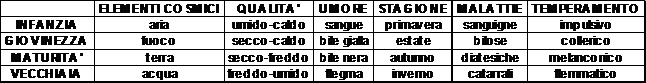 La teoria dei quattro elementi fu l'unità teorica di base del pensiero naturalistico medievale. Il sistema quaternario fu usato per spiegare la struttura del corpo umano e la patologia ad esso connessa, per individuare il carattere e l'habitus psichico tipico di ciascuna età. Il corpo umano era formato da quattro umori: sangue, flegma, bile gialla e nera. Queste sostanze, corrispondenti ai quattro elementi cosmici di Empedocle (aria, acqua, fuoco e terra), di cui possedevano le stesse qualità (caldo, umido, secco e freddo), erano responsabili dello stato o meno di salute dell'individuo nonché del suo temperamento. La condizione di armonia psichica e di sanità fisica era raggiunta attraverso l'equilibrio di tutte queste componenti.