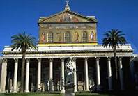 La Basilica di San Paolo fu costruita fuori dall'Urbe, lungo la via Ostiense, nella zona in cui la matrona Lucina raccolse il corpo dell'apostolo, che era stato decapitato. Le notizie sull'origine della Basilica sono discordanti. Alcuni sostengono che fu l'imperatore Costantino a far costruire la chiesa, che sarebbe stata consacrata lo stesso giorno di quella di San Pietro, il 18 novembre del 324 e ampliata nel IV secolo. Notizie più probabili, invece, affermano che intorno al 380 papa Damaso chiese agli imperatori allora regnanti, Valentiniano II, Teodosio ed Arcadio, di costruire un tempio sul luogo in cui era sepolto l'Apostolo delle genti che, a differenza di San Pietro, non disponeva ancora di un luogo di culto. La basilica, costruita in breve tempo, fu arricchita con mosaici e decorazioni da Gallia Placidia e Papa Siricio la consacrò nel 390.Lunga 97 metri. la basilica, preceduta da un quadriportico, aveva - ed ha tuttora - cinque navate, divise da 80 colonne: nella navata centrale, larga 24 metri (ha una larghezza pari a quella complessiva delle navate laterali, che l'affiancano due a due) si aprono sopra le colonne, 42 ampie finestre. Nell'abside un transetto custodisce la tomba dell'apostolo Paolo. Nel 441 un terremoto provocò dei danni e il papa Leone Magno provvide a sistemare la basilica e a far decorare la navata centrale con scene ispirate all'Antico Testamento e agli Atti degli Apostoli.Nel 739 i Longobardi e nell'846 i pirati saraceni, trovando la basilica lontana dalla città, senza fortificazioni e quindi completamente priva di difesa, la sottoposero a violenti saccheggi. Il papa Giovanni VIII costruì allora attorno alla Basilica una cittadella munita, che da lui prese il nome di Giovannipoli e che consentì poi alla chiesa di resistere agli attacchi di Enrico IV del 1083 e del 1084.