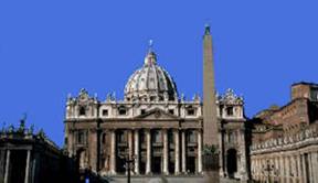 San Pietro in Vaticano o basilica vaticana è il più grande tempio della cristianità. Si trova sulla riva destra del Tevere, all'interno della Città del Vaticano. La primitiva basilica, a cinque navate, consacrata nel 326, fu eretta per volere di Costantino sulla tomba dell'apostolo. Ben presto San Pietro divenne un centro molto frequentato ed amato dai Romani, che già prima della fine dell'impero, nel 476, cominciarono a trasferirsi nella zona, nei pressi del Tevere, dove potevano sfruttare al meglio gli antichi e gloriosi resti imperiali. I fedeli si recavano a San Pietro per venerare le sacre reliquie: il corpo dell'apostolo, di sua figlia Petronilla e di altri discepoli, un frammento della croce, ma soprattutto la celebre Veronica, cioè il velo su cui era impresso il volto di Gesù. Nel 1289 il Papa Niccolò IV, menzionando le varie reliquie della Basilica, mise al primo posto la Veronica e al secondo posto il corpo dell'Apostolo. Perché la Veronica era la vera immagine del volto stesso di Gesù, era costruito da piccole particelle del suo Corpo rimaste sulla terra per ricordare il suo sacrificio per gli uomini. Durante i Giubilei veniva esposta alla folla ogni venerdì e ad ogni festa solenne. La chiesa negli anni si arricchì di reliquiari, conobbe le decorazioni del bizantinismo, del gotico e del romanico. Tra il 1100 e il 1200 fu decorata con affreschi e mosaici sia sulla facciata che all'interno. Nel 1300 Giotto e gli artisti della sua bottega realizzarono il mosaico della navicella e il polittico dell'altare maggiore. Seguì un periodo in cui la basilica fu trascurata e rischiava di andare in rovina. Fu papa Niccolò V che, verso la metà del 1400, decise di ristrutturare la chiesa e affidò l'incarico (1452) a Bernardo Rossellino. Morto il pontefice nel 1455, i lavori rimasero sostanzialmente interrotti fino all'avvento di Giulio II, che li affidò al Bramante. Questi si guadagnò il titolo di maestro ruinante, demolendo interamente l'antica chiesa e la nuova tribuna edificata dal Rossellino. Il 18 aprile 1506 cominciarono i lavori di edificazione della nuova basilica concepita dal Bramante secondo un impianto a croce greca con grande cupola centrale; egli riuscì a eseguire prima della morte (1514) solo i quattro pilastri centrali con relativi arconi di collegamento, condizionando peraltro tutti i successivi interventi. Raffaello, subentratogli, contrappose all'architettura centrale del Bramante un maestoso progetto con pianta a croce latina. Nel 1520, alla morte di Raffaello, Antonio da Sangallo ne seguì l'indirizzo. Michelangelo Buonarroti, che diresse i lavori dal 1547, riprese, invece, la concezione a pianta centrale del Bramante, immaginando la basilica isolata in mezzo a una piazza. Alla sua morte era quasi ultimato il tamburo sopra il quale Giacomo Della Porta e Domenico Fontana eressero (1588-1589) la grande cupola da lui concepita. A partire dal 1607 Carlo Maderno completò definitivamente l'opera, trasformando, per volere di Paolo V, l'impianto a croce greca in croce latina, con l'aggiunta di tre campate e del portico d'ingresso, e realizzò la facciata. Completata sostanzialmente nel 1612, la basilica fu consacrata da Urbano VIII nel 1626.Oggi la Basilica di San Pietro ha una lunghezza di 186 metri, ha una superficie di 15.160 metri quadrati e l'altezza della cupola è di 119 metri. Al suo interno vi è un numero incredibile di opere d'arte: 100 statue in marmo (oltre alle 150 della parte architettonica), 160 di travertino, 90 di stucco, 40 di bronzo, imponenti monumenti sepolcrali (come la tomba di Innocenzo III, opera di Antonio del Pollaiolo, i monumenti funebri ad Urbano VIII e ad Alessandro VII, realizzati da Gian Lorenzo Bernini e la tomba di Clemente XIII, scolpita dal Canova). Da ricordare, inoltre, il baldacchino in bronzo, con le quattro bellissime colonne a torciglione, sempre del Bernini, la Pietà di Michelangelo e lo splendore delle cinque porte che si aprono sulla facciata sotto la loggia delle Benedizioni. Una croce è segnata sulla Porta Santa. Quella stessa Porta Santa che aspetta di essere aperta con una cerimonia solenne per il grande Giubileo del 2000.