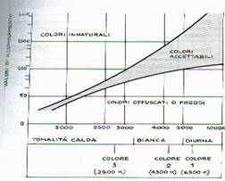 tra 3300 e 5000K -tonalità calda se Tc -3300K.La relazione tra la temperatura di colore Tc e