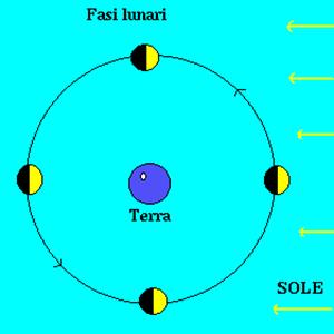 7d 9h 11min dopo il novilunio, la Luna ha percorso 14 della sua orbita e si trova in quadratura con il Sole e la Terra. Questa è la posizione di primo quarto e la Luna appare come un disco illuminato a metà. Passando dal plenilunio al novilunio, la Luna "cala", cioè la porzione illuminata si riduce. Trascorsi 7d 9h 11min dopo il plenilunio la Luna ha compiuto 34 della sua orbita e la posizione di quadratura si ripete.