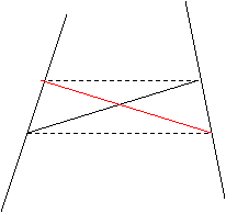 La soluzione grafica di un confine bilatero con un confine rettilineo, avviene congiungendo il punto A con il punto C per poi tracciare dal punto B, la parallela ad AC ottenendo così il punto D.