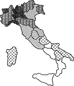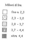 Cartogramma del prodotto lordo interno per abitante delle regioni italiane nel 1977.
