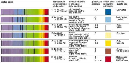 Il diagramma di Hertsprung-Russell mostra la relazione tra massa, colore e luminosità. La sequenza principale è lo stato in cui si vengono a trovare le stelle di medie dimensioni come il Sole. La classe spettrale non è altro che una classificazione delle stelle in base alla temperatura e quindi al colore. Va dall'azzurro al rosso e segue l'ordine O-B-A-F-G-K-M-N-R. Esiste poi una suddivisione ulteriore, per ampliare la precisione degli intervalli considerati, all'interno di ciascuna classe spettrale. L'ulteriore suddivisione va da 0 a 9 (ad esempio B2, G5) in ordine decrescente di luminosità.