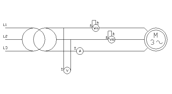 Con il metodo Aron si utilizzano due wattmetri sottoposti. Uno con la parte amperometrica su L1 e la voltmetrica su L1-L3, l'altro con la parte amperometrica su L2 e la voltmetrica su L2-L3.