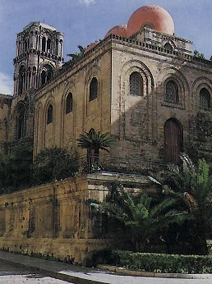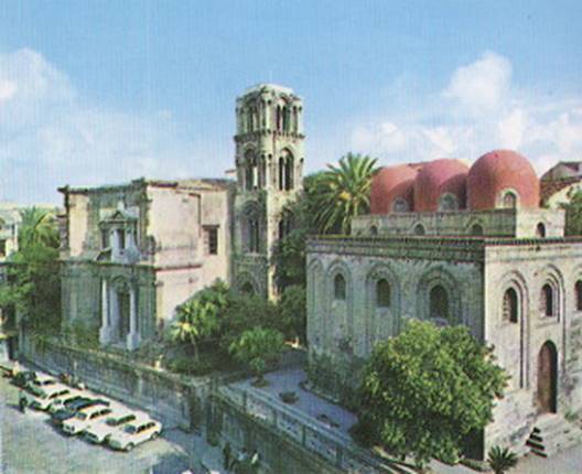 1.- La Martorana. Di contro a S. Caterina è la chiesa della Martorana o S. Maria dell'Ammiraglio, gioiello d'arte del periodo normanno, fatta erigere da Giorgio d'Antiochia, ammiraglio di Ruggero II, nel 1143. Affidata nel 1221 al clero greco, nel 1433 fu ceduta da re Alfonso di Aragona a un vicino monastero che era stato fondato da Eloisa Martorana (1193), da cui le venne il nome.