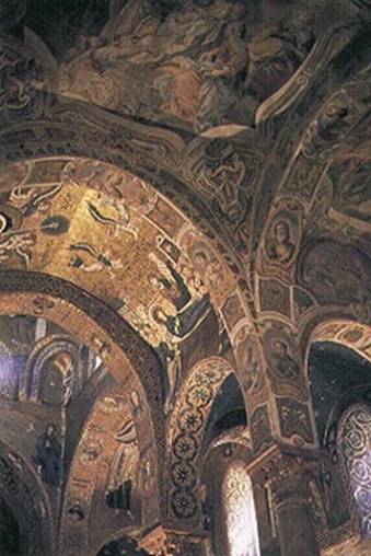 Si distinguono i mosaici originali opera degli artisti fatti arrivare da Costantinopoli intorno al 1140 e gli affreschi del 1683.